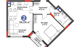 Продажа 2-комнатной квартиры, 62.7 м²