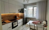Частично остаётся мебель и техника: индукционная плита, духовка с кухней, шкафы, раскладной диван.