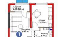 33.47 м², кухня – 10.57 м²