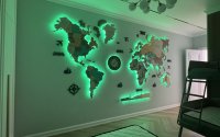 • В детской – продуманная мебель, двухъярусная кровать, рабочее место, крутая карта мира с подсветкой – идеальная детская для двоих.