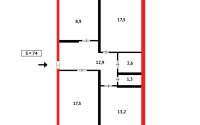Квартира общей площадью 74,2 м² грамотно продумана и позволяет удобно организовать пространство для всех членов семьи.