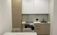 Внутри сделана удобная кухня-студия с встроенной мебелью и техникой: холодильник, варочная поверхность, духовой шкаф и вытяжка. Установлена новая сантехника, пластиковые окна, есть счётчики. Квартира продаётся полностью с мебелью. Имеется балкон.