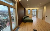 Элитный двухэтажный пентхаус с дизайнерским ремонтом, панорамной террасой, видом на город и горы. Современная техника, умный дом, тёплые полы, мебель на заказ. 1 этаж — гостиная, кухня, кабинет, санузел; 2 этаж — мастер-спальня с ванной, детская, гостевая, санузел, прачечная. Высокая приватность, тихий район, 2 квартиры на этаже.