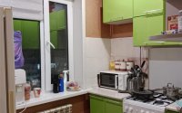 В квартире сделан Косметический ремонт, все окна и балкон застеклены пластиком, на полу линолеум, стены выровнены и поклеены обои, потолок выровнен.