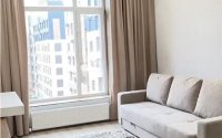 Квартира полностью готова: кровать 170×200, диван, 3 шкафа, кухня с варочной, духовкой и встроенной микроволновкой, холодильник, стиральная машина, кондиционер, телевизор, ванна с тропическим душем, фильтры на воду, балкон во двор.