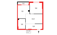 42.6 м², кухня – 7.9 м²