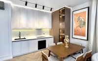 • Дизайнерский ремонт премиум-уровня: натуральные материалы, каменная столешница, стильные интерьеры, картины ручной работы из натуральных камней и вышивки, ручная роспись на стенах.