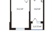 Продуманная планировка: изолированная спальня и просторная студия, кухня выделена в отдельную зону.