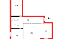 Общая площадь 63 кв.м. Кухня 8 кв.м.