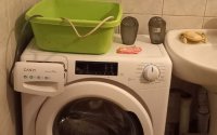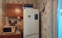 С бытовой техникой: телевизор, стиральная машина, холодильник, микроволновка.