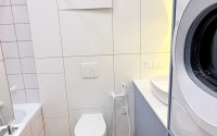 • сан узел с ванной, где встроены стиралка и сушилка.