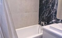 Есть встроенная кухня, новая сантехника, кондиционер с Wi-Fi, умный замок и нано-фильтры на окнах, которые хорошо задерживают пыль. Встроенная техника Samsung: холодильник, микроволновка, индукционная плита, посудомойка, стиральная машина и духовка с Wi-Fi. Также есть гардеробная, встроенные шкафы и много мест для хранения. Подключён интернет Алма-ТВ. Тихий двор, комфорт и уют гарантированы.