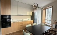 Продаётся 2 комнатная квартира. Кухня со встроенной техникой, есть кладовая. Использованы натуральные материалы, стеклянные перегородки, высокие двери, установлен кондиционер. Санузел с качественной сантехникой. Предусмотрены гардеробные.