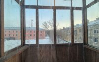 Большие окна и подоконники, балкон застеклен, дерево.