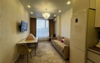 Светлая и теплая двухкомнатная квартира-студия (евро-двушка) с распашной планировкой. Квартира не угловая, с кухней-студией, новой сантехникой, счетчиками и кондиционером. В продаже имеется также парковочное место за отдельную доплату.