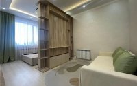 Во дворе тихо и спокойно, территория огорожена, соседи доброжелательные. В квартире светло и тепло, есть просторный балкон, а гостиная удобно разделена на зону отдыха и спальню.