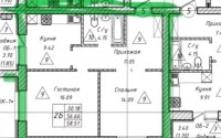 57.3 м², кухня – 10 м²