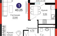 Продажа 1-комнатной квартиры, 43 м², ул. Е-429, дом 14