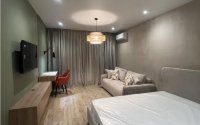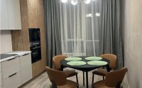 В квартире выполнен свежий дизайнерский ремонт, всё абсолютно новое — никто не жил. Стены оформлены декоративной штукатуркой Zara, кухонная мебель выполнена из крашеного МДФ. Установлена встроенная техника Hansa (производство Польша). В наличии стиральная и сушильная машины: сушильная — вентиляционного типа, пар выводится напрямую в вентиляцию.