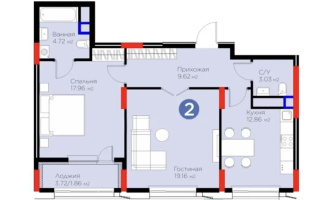 Продажа 2-комнатной квартиры, 69.62 м² в Астане