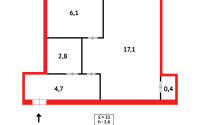 • Комната — 18,2кв.м, есть кладовая(гардеробная) – 0,5кв.м