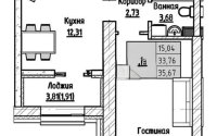 35.67 м², кухня – 12.31 м²