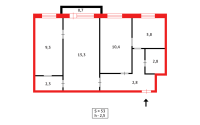 53 м², кухня – 5.8 м²