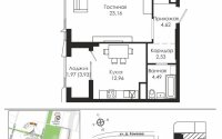 50 м², кухня – 12.96 м²