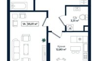 55.1 м², кухня – 12.8 м²