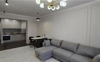Просторная трёхкомнатная квартира с удобной планировкой: гостиная, спальня, детская, кухня, прихожая, два санузла и две гардеробные. Окна на две стороны, с видом на горы и школу.