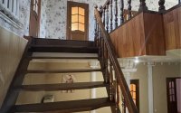 Общая площадь дома составляет 460 кв.м. Высокие потолки-3,40 м. Комнаты все изолированы. Этажи соединяет деревянная лестница.