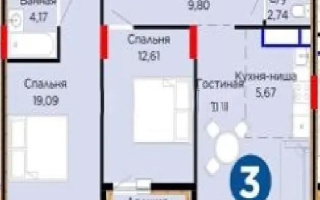 Продажа 3-комнатной квартиры, 75.75 м²