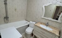 Санузел совмещен, Удобный рукомойник, внизу которого объемная тумба. Ванна с системой душ-тропики