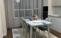 Продаётся трёхкомнатная квартира в жилом комплексе **Sat City**. Дом расположен в активном и развитом районе, рядом находится школа. Квартира новая, светлая и ухоженная, полностью меблирована. Вся бытовая техника остаётся новым владельцам. Продажа связана с переездом в другой город. Для реального покупателя возможен торг.