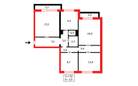 Приятная для проживания планировка с оптимальным разделением пространства: комнаты — большие, не проходные, что удобно для семей с детьми или тех, кто ценит личное пространство.