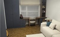 Вся мебель МДФ пленка, стол и стулья из натурального дерева, большая гардеробная, кровать и матрас Askona с максимальным количеством пружин, блэкаут шторы.