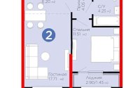 45.17 м², кухня – студия