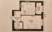 Продается 1-комнатная квартира в черновой отделке, счетчики, кондиционер.