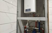Напольное покрытие - кварцвинил (материал стойкий к ударам, царапинам и воде, очень комфортен при ходьбе).