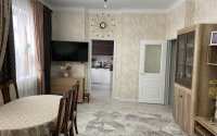 В квартире сделан очень качественный и хороший ремонт. Матовые натяжные потолки, на полу ламинат. Два санузла с хорошей сантехникой. Высота потолка 3,05 м. На кухне полностью встроенная техника (электрическая плита, вытяжка, духовой шкаф, микроволновая печь, посудомоечная машина) кондиционер . Квартира очень светлая и уютная, зимой практический редко включаются радиаторы отопления так как в квартире очень тепло.Очень красивый и уютный и теплый подьезд, два лифта, презентабельная входная группа.