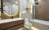 Есть подземный паркинг, тихий двор и детская площадка. Санузел с ванной и тропическим душем, кухня с подсветкой и удобными шкафами. В прихожей большое зеркало, много розеток.