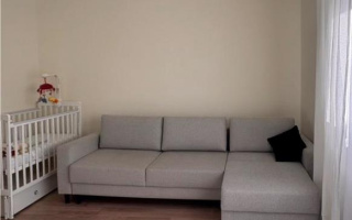 Дом кирпичный, тёплый, всего три подъезда, тихий двор с зеленью, без выхода на шумные проспекты.