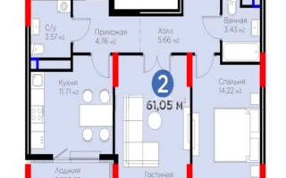 Продажа 2-комнатной квартиры, 61.15 м²