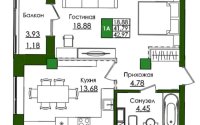 44 м², кухня – 13.68 м²