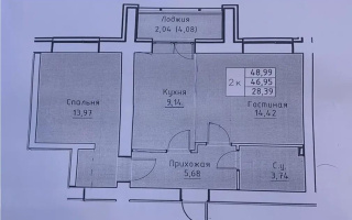 Продажа 2-комнатной квартиры, 49 м²