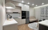 Мебель: прихожая и санузел из крашеного МДФ. В санузле 6,5 кв.м — электрический тёплый пол. Двери высотой 2,40 м российского производства. Кухня полностью оборудована встроенной техникой Midea: посудомоечная и стиральная машины, фильтр для воды.