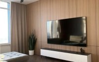 Планировка включает просторный зал, объединённый с кухней-студией, спальню, два санузла и прачечную комнату. Квартира выполнена в стиле современной неоклассики, с качественным ремонтом: потолки гипсокартон с встроенными софитами и магнитными треками, ровные стены под покраску, двери скрытого монтажа высотой 2,8 м.