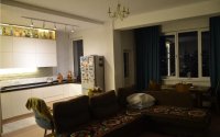 Квартира с кухней-студией, пластиковыми окнами, установленными счётчиками и кондиционером.