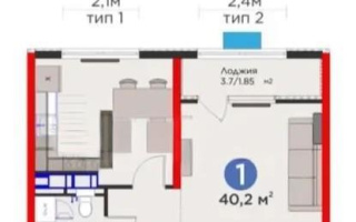 Продажа 1-комнатной квартиры, 41 м²
