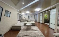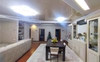 Гостиная влюбляет в себя своим авторским дизайном. Разделена на две зоны, где в одной части можно комфортабельно встречать гостей, а в другой насладиться семейным просмотром домашнего кинотеатра.